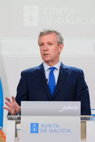El presidente de la Xunta de Galicia, Alfonso Rueda, en la rueda de prensa posterior al Consello de la Xunta - DAVID CABEZON @ XUNTA