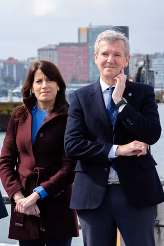 El presidente de la Xunta de Galicia, Alfonso Rueda, junto a la conselleira de Vivenda e Planificación de Infraestruturas, María Martínez Allegue,en un acto en A Coruña - DAVID CABEZÓN @ XUNTA