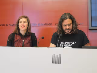 La edil de Compostela Aberta, Marta Lois, y el portavoz de Anova y diputado de Común da Esquerda, Antón Sánchez, en Santiago - EUROPA PRESS