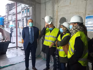 El conselleiro de Sanidade, Julio García Comesaña, junto al gerente del área sanitaria de Vigo, Javier Puente, y otros responsables del Sergas, en una visita a las obras de nuevo centro de salud de Bouzas, en la ciudad olívica. - EUROPA PRESS