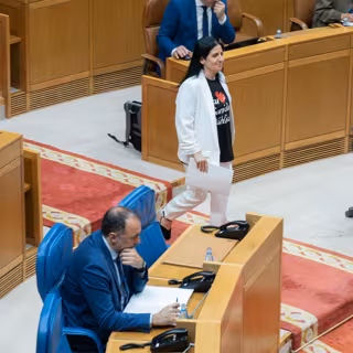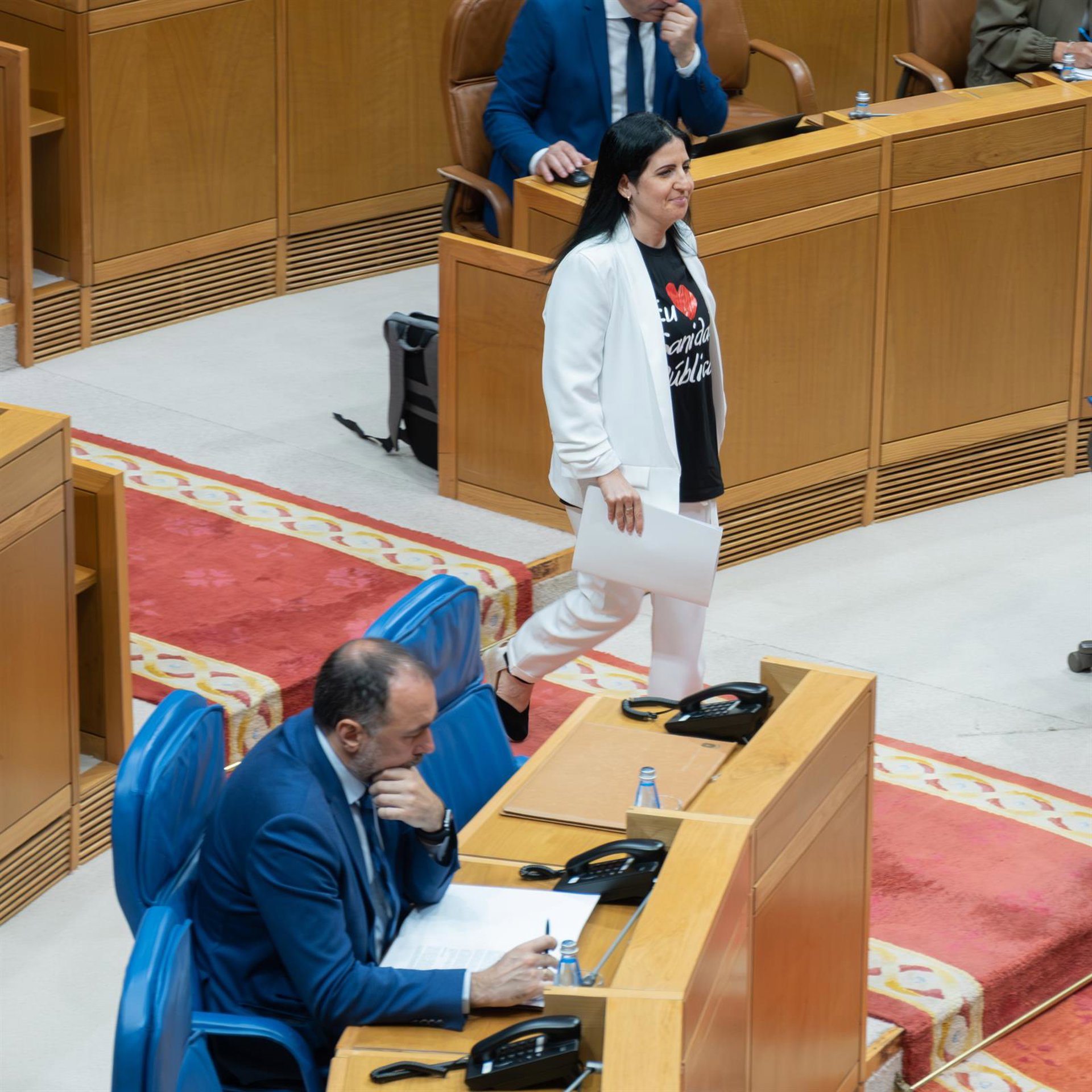 La médica de Pediatras e Matronas Xa Vanessa Viquendi y el conselleiro de Sanidade, Julio García Comesaña, en el debate de la ILP sobre Atención Primaria en el Parlamento gallego - César Arxina - Europa Press