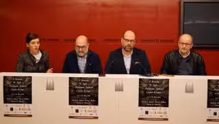 En la presentación de las jornadas han estado el alcalde de Santiago, Martiño Noriega, la concejala de Turismo, Marta Lois, el director de contenidos del evento, Fernando Franjo, y el director de la Fundación Torrente Ballester, Miguel Fernández-Cid.