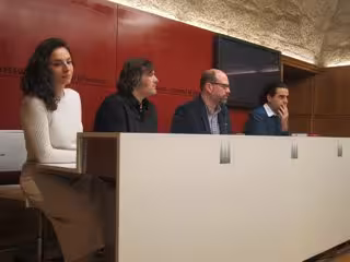 Este jueves ha tenido lugar la presentación del programa con la presencia del alcalde de Santiago, Martiño Noriega, y de los miembros de la Asociación Músicos ao Vivo Xavier Mera, Xacobe Martínez Antelo y Nastasia Zürcher.