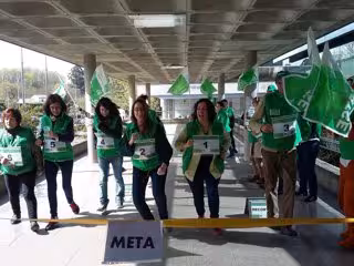 Bajo el lema 'Carrera profesional para nuestro personal', los manifestantes han escenificado una carrera de obstáculos ante el Hospital Clínico de Santiago para pedir que se recupere el reconocimiento económico por la antigüedad e implicación de los trabajadores detenido en 2010 debido a los ajustes presupuestarios y "recortes" que han escenificado como obstáculos.