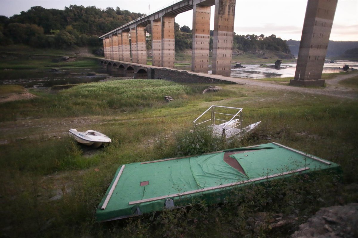 Varias barcas en el cauce seco tras el descenso de las aguas en el Embalse de Belesar, a 6 de octubre de 2023, en Portomarin, Lugo, Galicia. - Carlos Castro - Europa Press