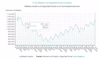 Afiliados a la Seguridad Social en Galicia en junio de 2023 - EPDATA