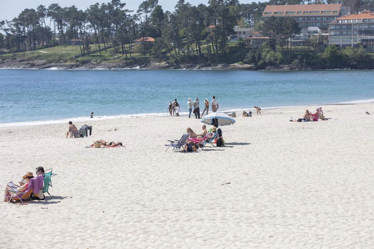 Varias personas en la playa de Sanxenxo, en Pontevedra, Galicia (España), a 27 de marzo de 2021. El subcomité clínico mantiene el nivel alto de restricciones en el concello de Sanxenxo, lo que conlleva que la hostelería solo puede servir en las terrazas - Beatriz Ciscar - Europa Press
