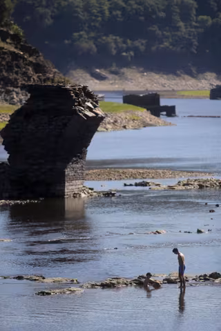 Con el viejo pueblo al descubierto, el alcalde de Portomarín admite que es una forma de "reencontrarse con la historia".