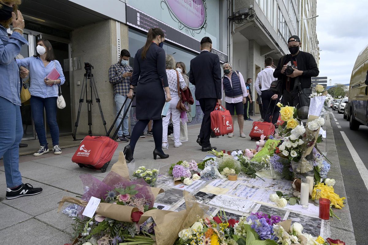 Varias personas pasan al lado del altar colocado en la acera donde fue golpeado Samuel, el joven asesinado en A Coruña el pasado sábado 3 de julio. - M. Dylan - Europa Press