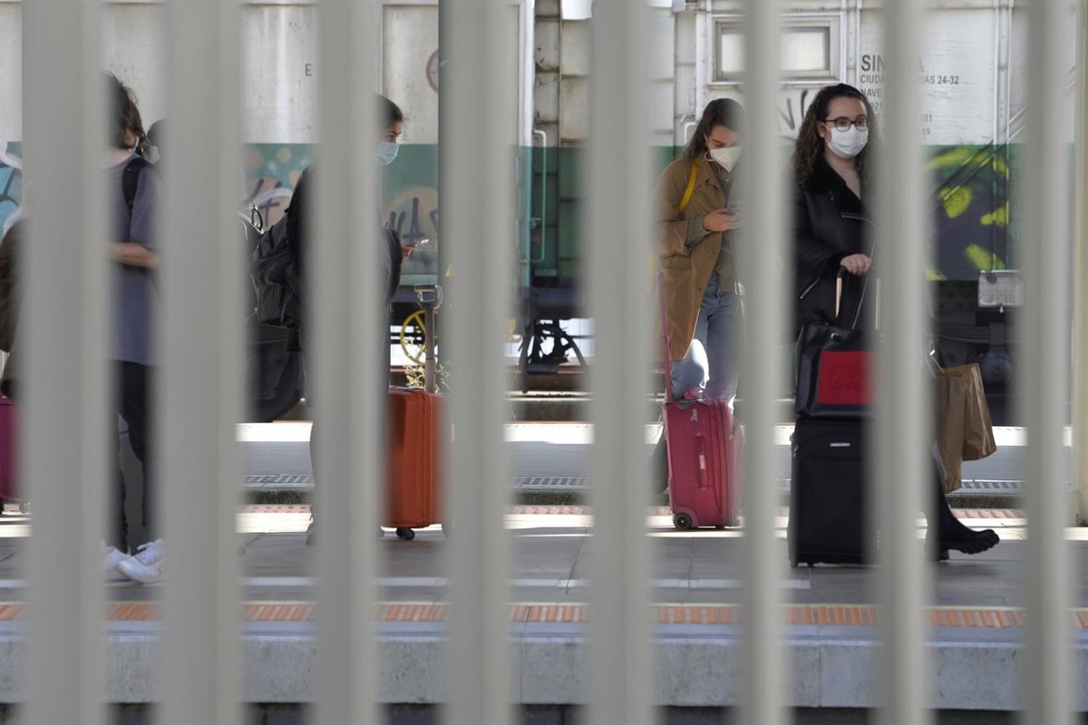 Varios estudiantes se dirigen a la estación de tren para regresar a su casa durante el fin de semana, en Santiago de Compostela. - Álvaro Ballesteros - Europa Press