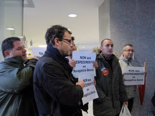 En este sentido, los sindicatos han criticado que en 160 oficinas de la red de Novagalicia --la que opera en Galicia, Asturias y León-- han recibido llamadas "para decirles que van a ser cerradas". Lo han hecho "sin tener comunicación previa los sindicatos, lo cual demuestra una mala fe absoluta por parte de la empresa", ha protestado el representante de la CIG.