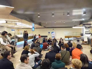 Miembros de CIG, CC.OO. y UGT, encabezados por los secretarios comarcales de los sindicatos, han realizado este viernes una ocupación simbólica de la sede de Novagalicia Banco en Vigo para manifestar su rechazo a la "especulación financiera" e insistir en que fue "la mala praxis por parte de las entidades crediticias la que generó la actual crisis".