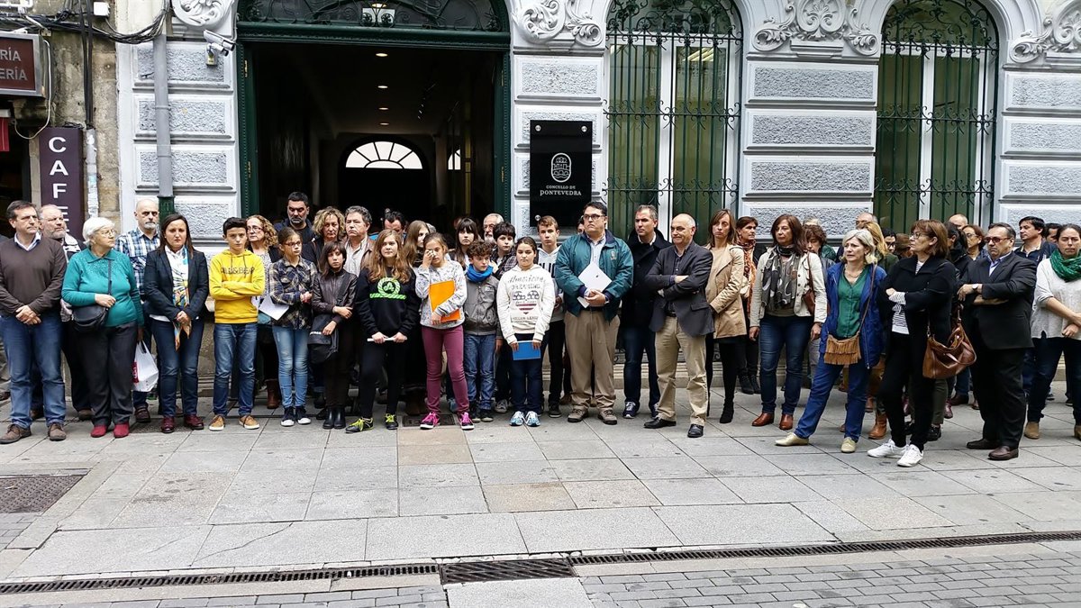Pontevedra acogió una concentración institucional organizada por el propio gobierno local con responsables políticos de todos los grupos , trabajadores y ciudadanos. En ella participó, además, un grupo de escolares de 1º de la ESO del Instituto Luis Seoane que acudieron al Ayuntamiento a reunirse con la concejala Carme Fouces como parte de un trabajo en materia de igualdad.