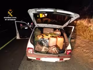 Al inspeccionar el vehículo comprobaron que en el maletero había varias garrafas de plástico llenas de gasoil y que, al momento, salían corriendo dos personas que estaban detrás de un camión estacionado en el tramo de obras próximo.