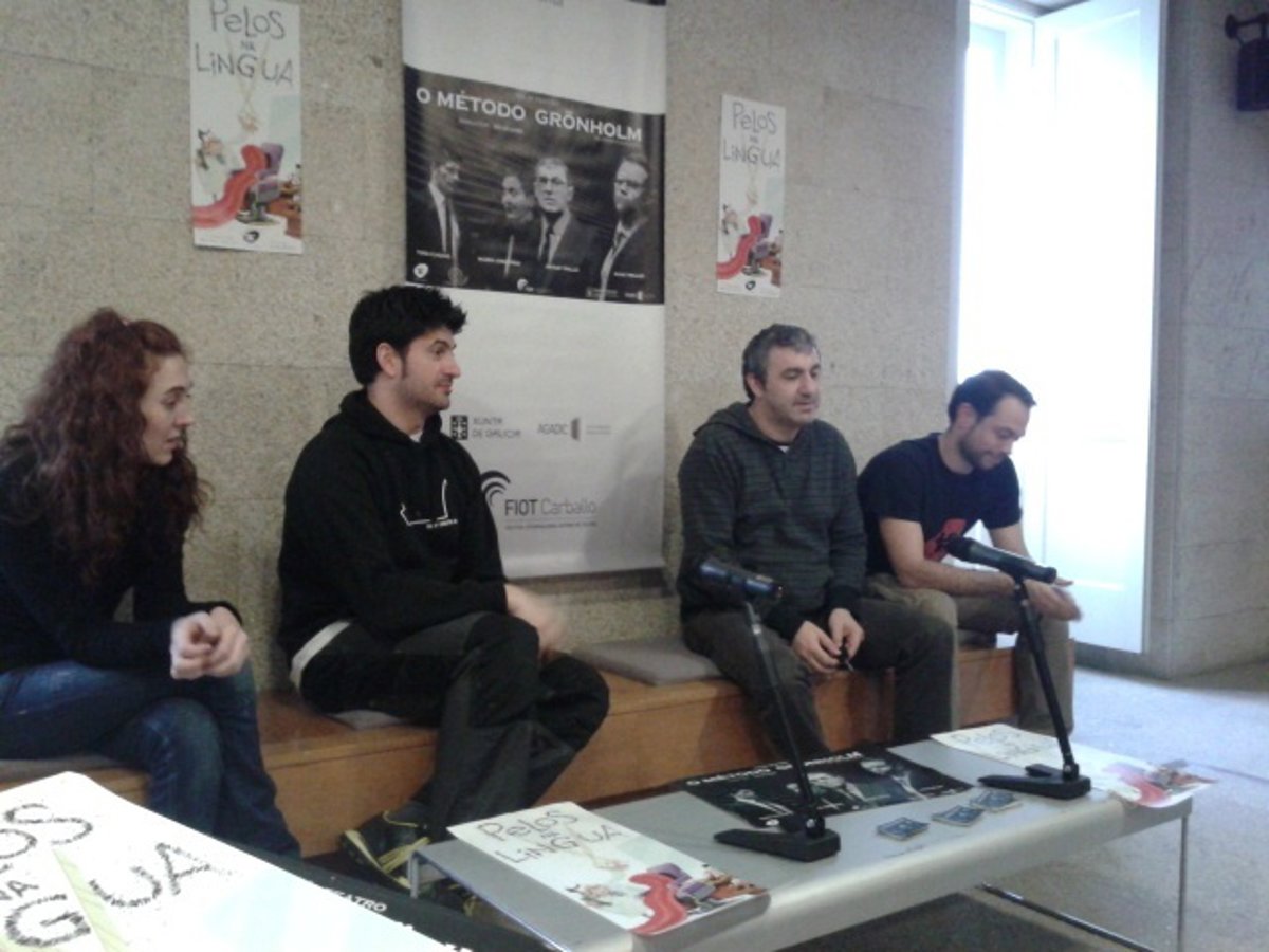 En cuanto a 'Pelos na lingua' constituye una comedia que aborda los usos y "abusos" de la lengua gallega y del "estado en que se encuentra". Esta pieza puede considerarse la segunda parte de 'Bicos con lingua', la anterior propuesta de Talía sobre el mismo tema, aunque no se trata de una continuación porque parte de un enfoque distinto.
