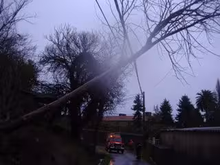 En este municipio, otro árbol cayó quedando apoyando sobre un cableado eléctrico con riesgo de desplome sobre una vivienda, por lo que se requirió la presencia de operarios de Fenosa.