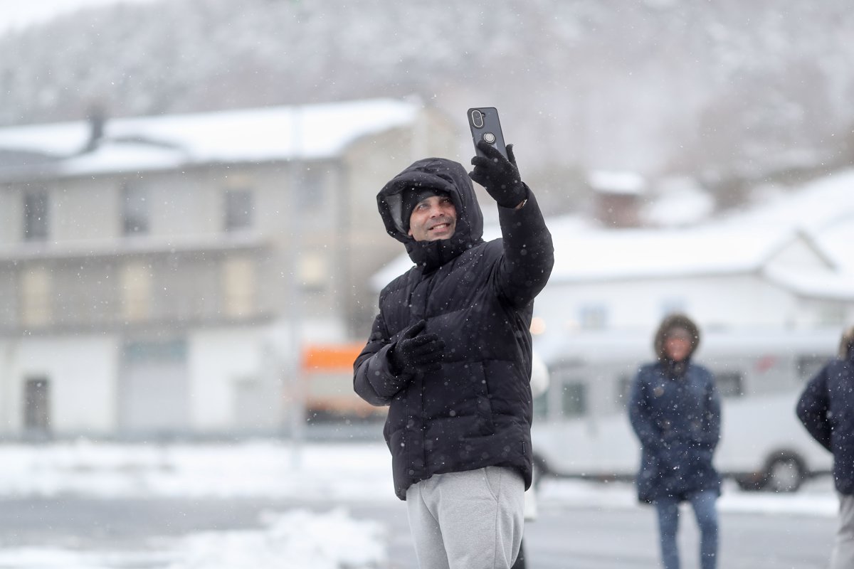 Una persona se hace una foto en la nieve, a 6 de enero de 2026, en Pedrafita do Cebreiro, Lugo, Galicia (España). - Carlos Castro - Europa Press
