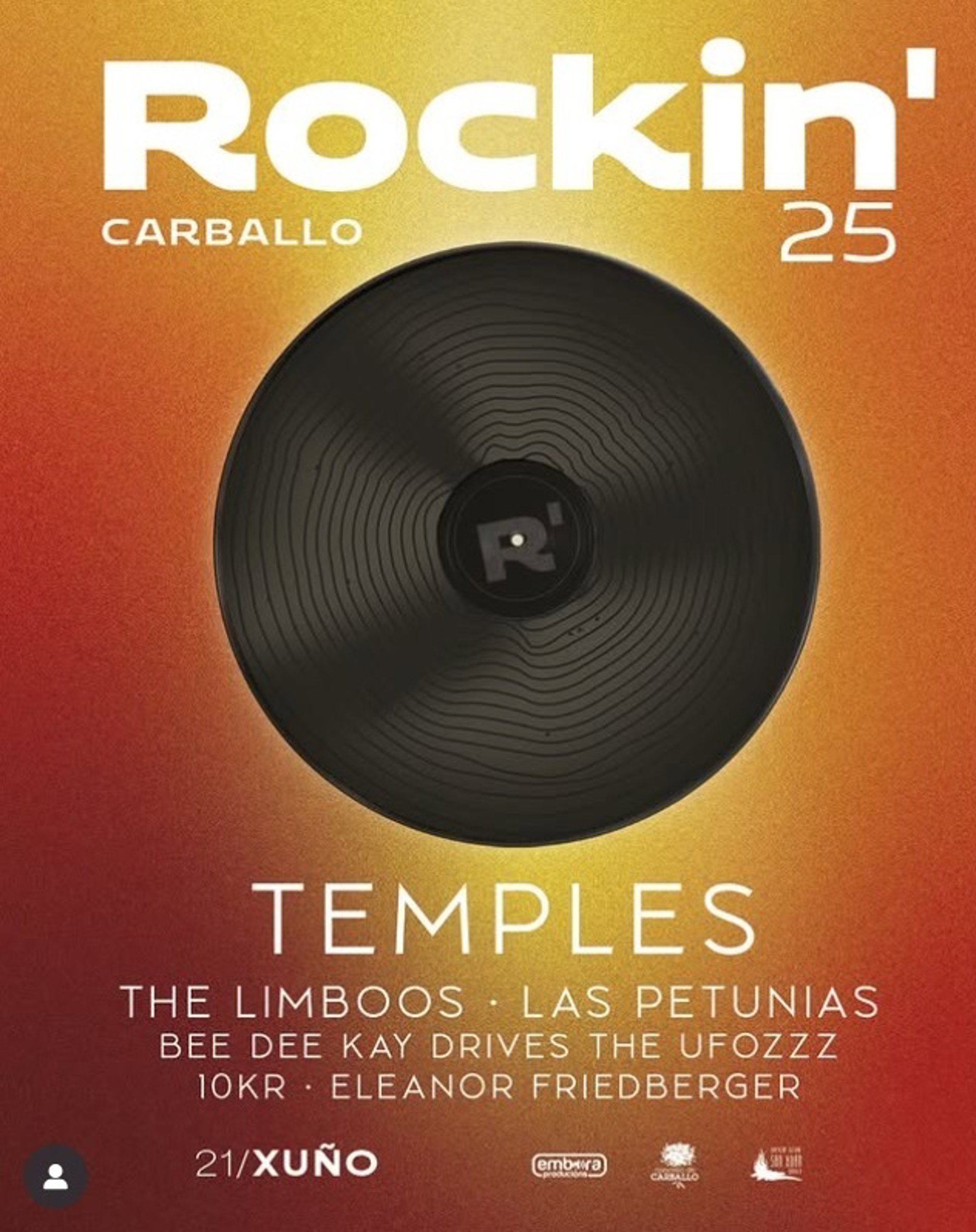 El festival 'Rockin' reunirá este sábado, día 21 de junio, en Carballo (A Coruña) a bandas como The Temples, The Limboos y Las Petunias, en una jornada que cerrará el artista carballés afincado en Copenhague, 10KR.