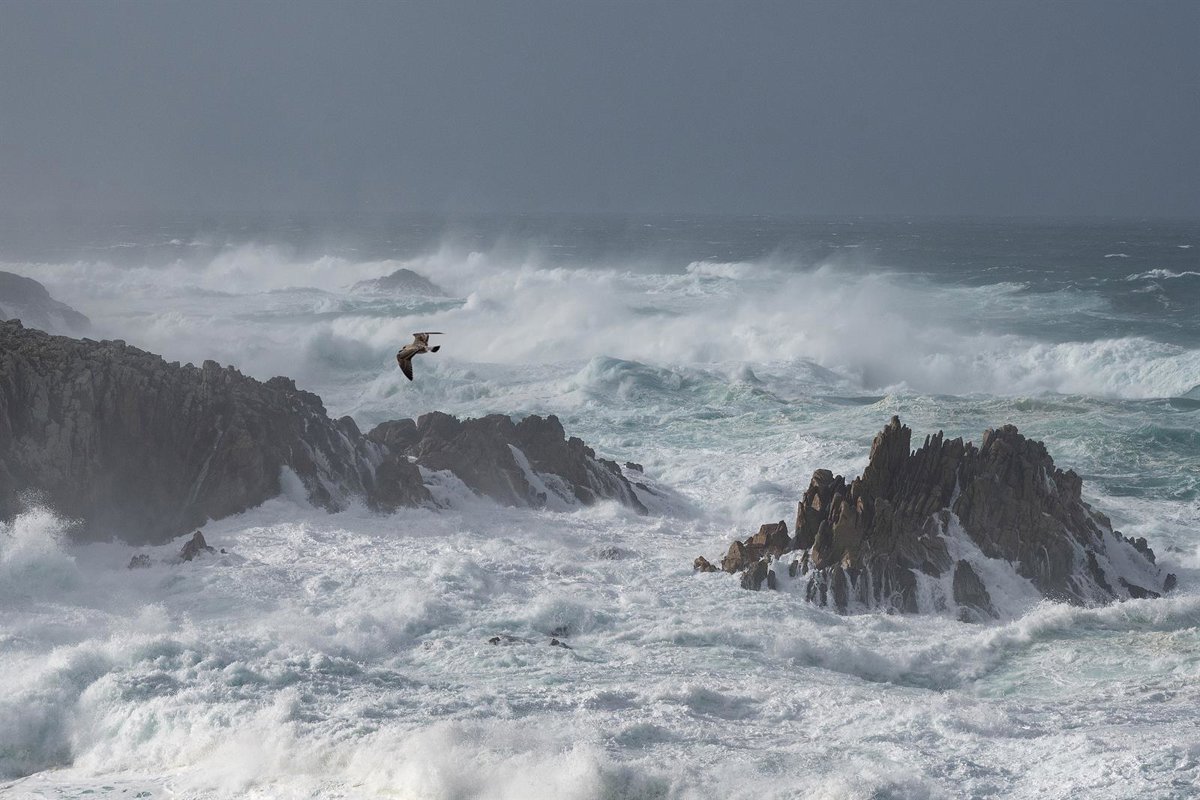 Todo el litoral gallego permanecerá durante este martes en aviso amarillo por temporal costero ante la previsión de vientos de fuerza 7 y olas de entre cuatro y cinco metros.