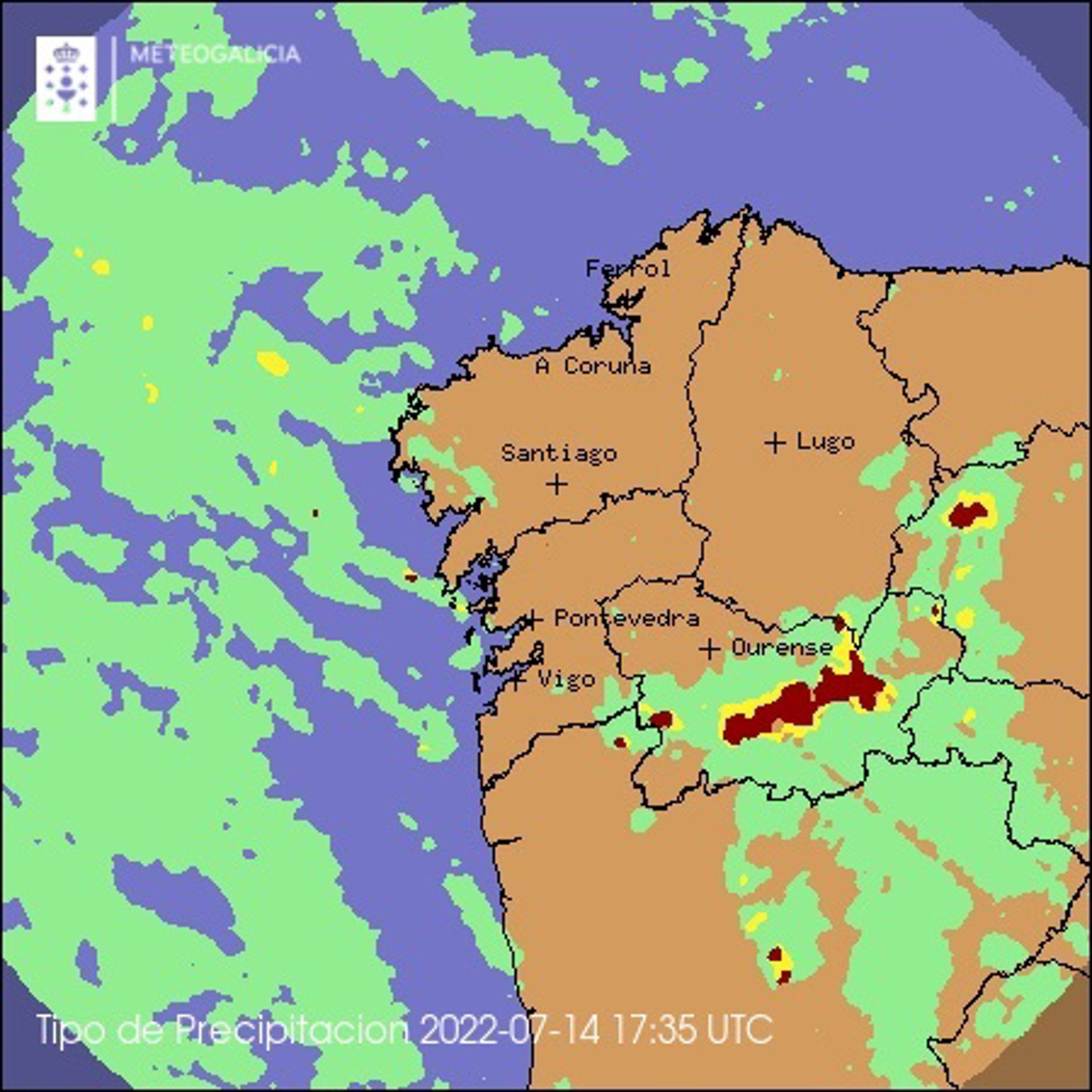 En concreto, en su perfil de Twitter, MeteoGalicia ha informado de episodios de lluvia torrencial sobre Ourense y también en el sur de Lugo; si bien las tormentas afectan a gran parte del territorio gallego.