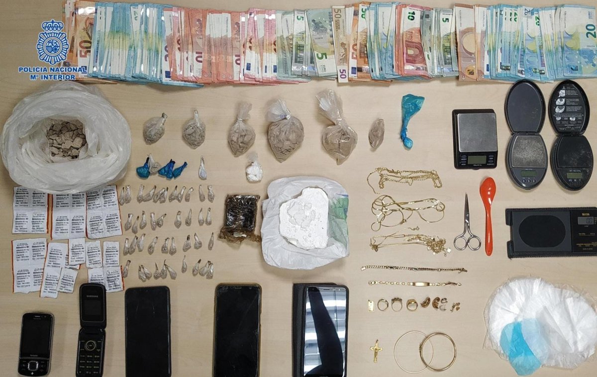 Asimismo, el total de la droga intervenida por los actuantes alcanzaba los 400 gramos de cocaína, 300 gramos de heroína, 100 de marihuana, 75 de hachís, 150 pastillas de metadona y 700 gramos de sustancia de corte. A esto se suman 60.000 euros en efectivo, 18 básculas de precisión, 26 teléfonos móviles, una pistola detonadora, tres envasadoras de vacío, joyas y dos vehículos.