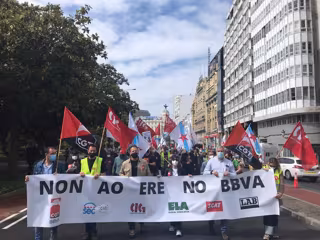 Trabajadores de BBVA en Galicia se han movilizado en una jornada de huelga convocada por la CIG, junto con los sindicatos ELA, LAB SACT SEC y CGT, en rechazo a un expediente de regulación de empleo (ERE) que el secretario de la sección sindical de la central nacionalista en la entidad, Miguel Fernández, ha calificado de "injusto" e "injustificado".