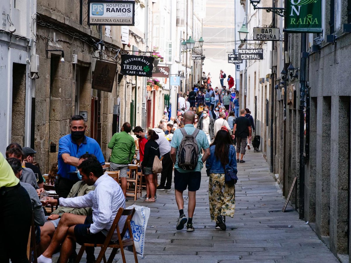 Varias personas en una calle del centro de Santiago de Compostela, a 31 de julio de 2021, en Santiago de Compostela, A Coruña (Galicia). - César Arxina - Europa Press