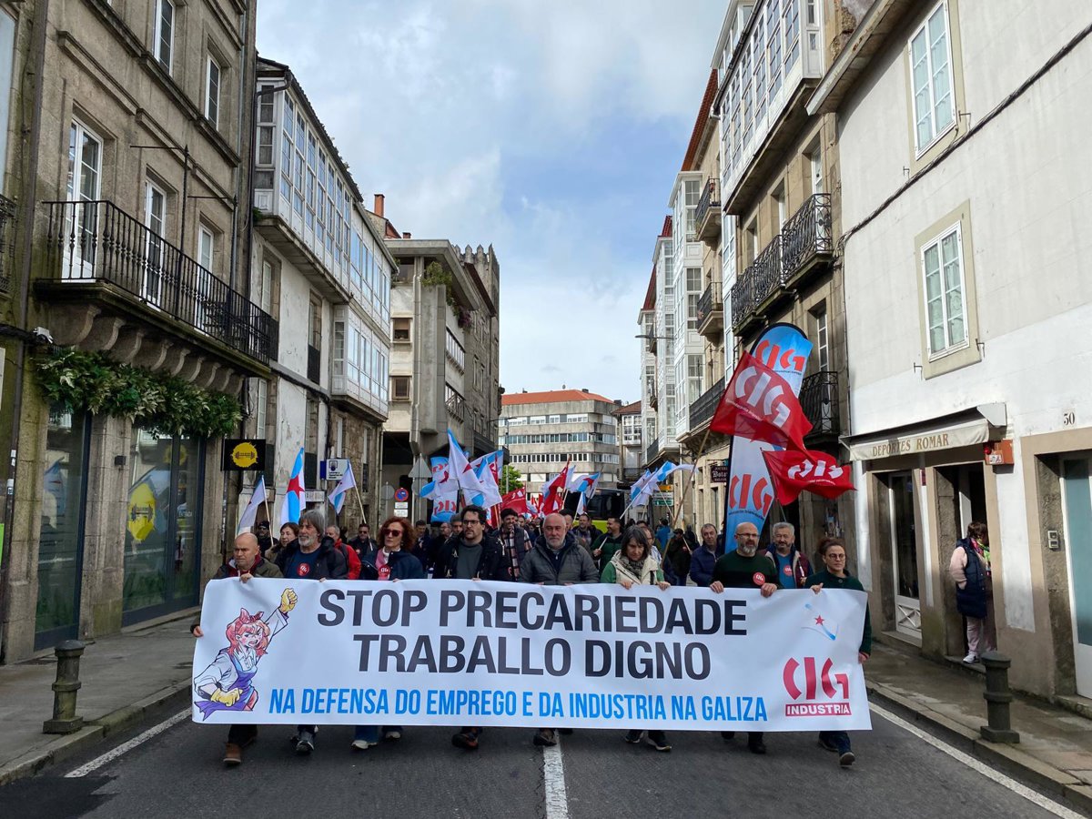 Durante el recorrido, que ha estado encabezado por una pancarta bajo el lema 'Stop precariedad, trabajo digno. En la defensa del empleo y de la industria en Galicia', los manifestantes han entonado cánticos como "sin industria no hay futuro" y "la lucha es el único camino".
