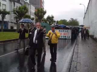 Más de un millar de trabajadores de Navantia y empresas auxiliares se han manifestado en Ferrol en protesta por los anuncios "indecentes" por parte del Gobierno de carga de trabajo en campaña electoral y para reclamar el "veto" en las elecciones del domingo al Partido Popular, al que acusan de "mentir" en sus promesas sobre el sector naval.