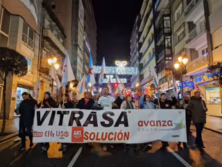 La manifestación iba encabezada por una pancarta que rezaba 'Vitrasa solución', firmada por los sindicatos CIG, UGT, USO y Comisiones Obreras (CC.OO.), convocantes de la protesta.