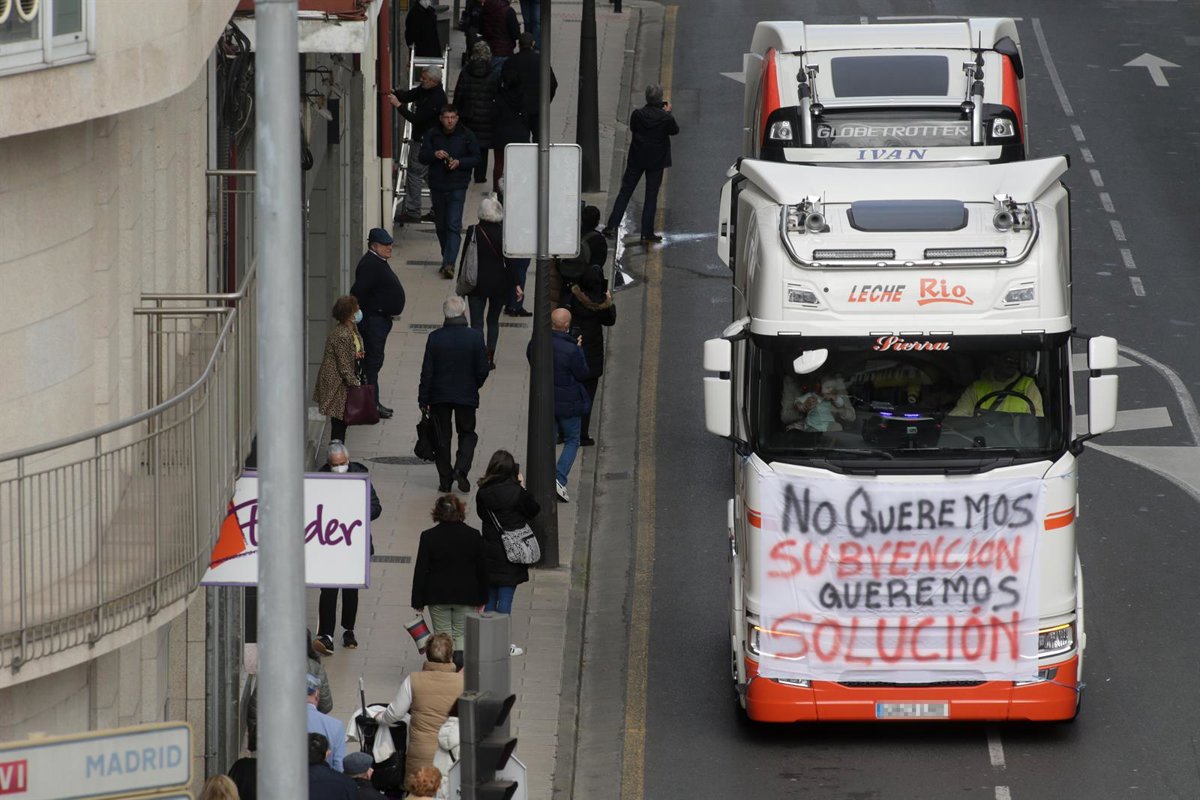 Archivo - Una fila de camiones entran en el centro de Lugo por la Avenida da Coruña, en una marcha lenta que ha salido desde el polígono de As Gándaras para pasar por varias localizaciones del centro de la ciudad, durante el noveno día de paro nacional - Carlos Castro - Europa Press - Archivo