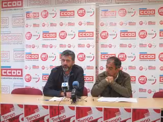 En rueda de prensa en Santiago, los secretarios xerais de UGT y CC.OO. en Galicia, José Antonio Gómez y Ramón Sarmiento, han presentado las nueve movilizaciones conjuntas de ambos sindicatos que harán el 1 de mayo, cuyo acto central tendrá lugar en Vigo (con salida a las 11,30 horas de Vía Norte).