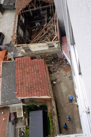 Vista aérea del edificio que se ha derrumbado, a 25 de mayo de 2024, en Vigo, Pontevedra, Galicia (España), en el que ha muerto un bombero municipal que participaba en operativo de inspección. - Javier Vázquez - Europa Press