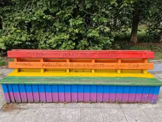 Un banco decorado con los colores de la bandera arcoiris situado en el paseo de A Madelana, en Cabanas (A Coruña), ha sido vandalizado con mensajes homófobos.