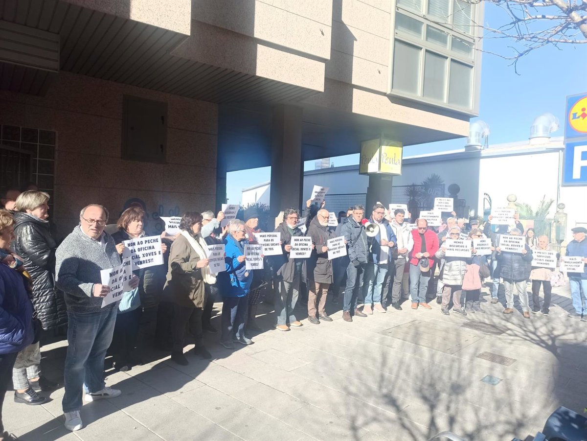 Medio centenar de vecinos del barrio vigués de Teis se han concentrado en la mañana de este viernes delante de la oficina de Servicios Sociales de la zona para denunciar la "falta de personal" de estas instalaciones y el "funcionamiento bajo mínimos" de las mismas desde hace meses.