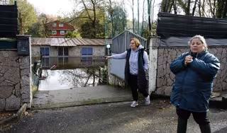 Dos mujeres junto a una casa inundada por el desbordamiento del río Tea, a 23 de noviembre de 2022, en Ponteareas, Pontevedra, Galicia (España). - Javier Vázquez - Europa Press