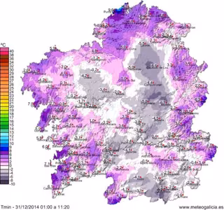 MeteoGalicia ha indicado que, al igual que el martes, las temperaturas más bajas correspondieron a los valles del interior de la Comunidad gallega.
