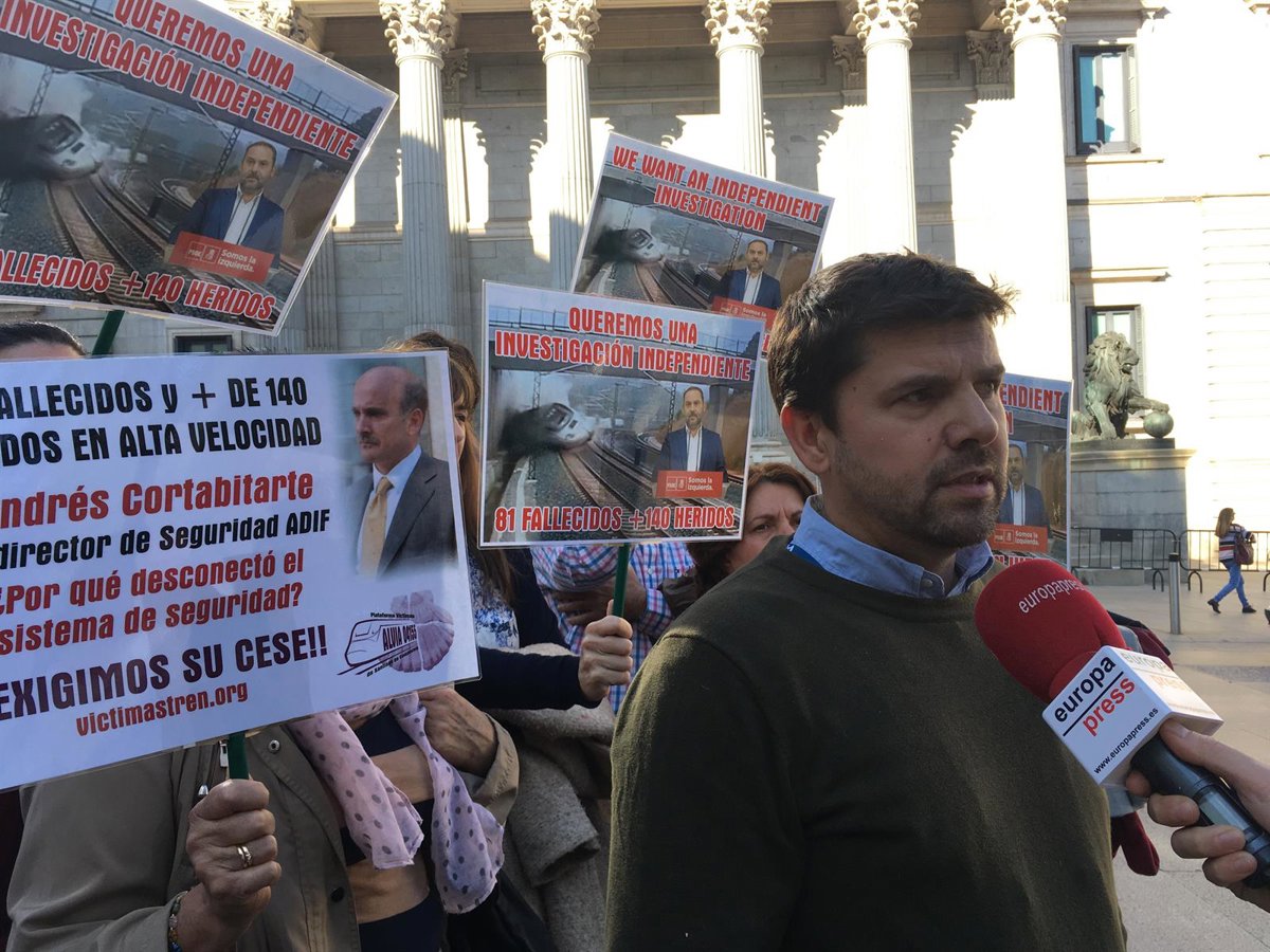 Jesús Domínguez, presidente de la plataforma, ha exigido la dimisión de Andrés Cortabitarte, que fue director de Seguridad de Adif, imputado en la causa y que este miércoles compareció ante la comisión de investigación del Congreso. Actualmente la Subdirección de Gestión Logística de Aprovisionamiento en Adif, un cargo de libre designación.