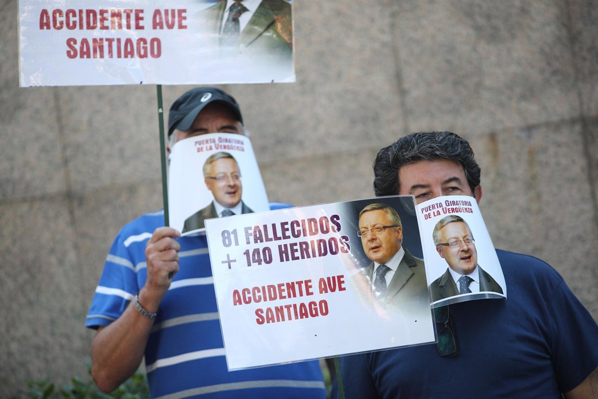 Archivo - Varias víctimas del accidente ferroviario de Angrois se concentran con carteles como signo de protesta ante la sede de Enagás. - Eduardo Parra - Europa Press - Archivo
