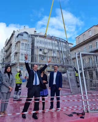 El Ayuntamiento de Vigo ha iniciado ya la instalación de su árbol de Navidad gigante, que este año crecerá hasta los 35,5 metros de altura, 50 centímetros más que en las fiestas pasadas, según ha anunciado el alcalde, Abel Caballero.
