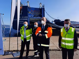 "Uno de los grandes objetivos del Puerto es la disminución y la eliminación de las emisiones de CO2", ha reivindicado ante la prensa, por lo que ha dado las gracias a la naviera UECC por elegir Vigo para la escala inaugural en España de este barco, que entró en servicio el pasado 5 de enero.