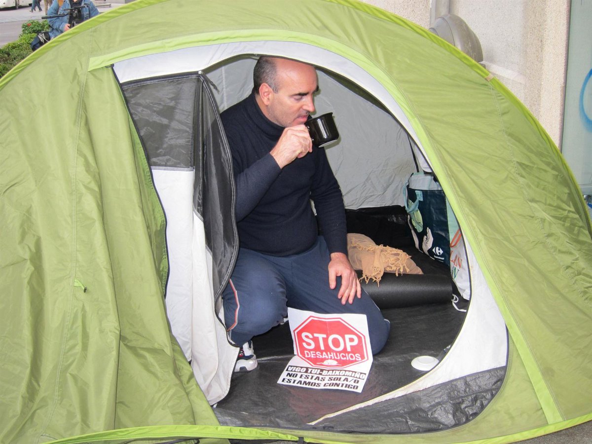 Un vigués inicia una huelga de hambre acampado delante de una entidad financiera para reclamar la dación en pago