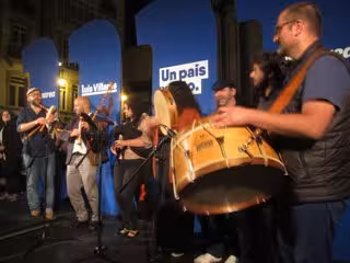Panderetas y tambores en un final de fiesta en la ciudad de las Murallas a las que, precisamente, Villares hizo referencia para reivindicar la ruptura de "barreras mentales que parecían infranqueables" que supuso en 2012 la coalición Alternativa Galega de Esquerda (AGE), encabezada por "el maestro" Xosé Manuel Beiras.
