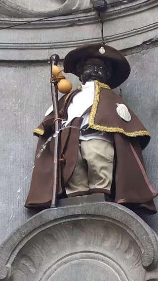 La famosa estatua de Bruselas Manneken Pis vestirá el tradicional traje de peregrino hasta finales del mes de mayo, gracias a una iniciativa promovida por la Asociación belga de Amigos del Camino de Santiago.