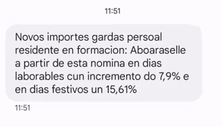 El SMS informaba a los empleados sobre las últimas subidas salariales, algunas de ellas las pactadas con los sindicatos en abril de 2023, que empezarán a notar en la nómina de febrero. El Sergas lo atribuye a una comunicación "fluida y habitual" que mantiene con sus trabajadores, también en cuestiones relativas a los "cambios que tendrán en su nómina".