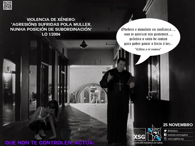 A través de sendos carteles, XSG critica la publicación por parte del Arzobispado de Granada del libro 'Cásate y sé sumisa' porque "promover la sumisión de las mujeres es el primer paso hacia la violencia de género"; y, a la vista del aumento de malos tratos hacia las adolescentes a través de las nuevas tecnologías, lanza el mensaje 'Que no te controlen, actúa' sobre una conversación de 'Whatsapp'.