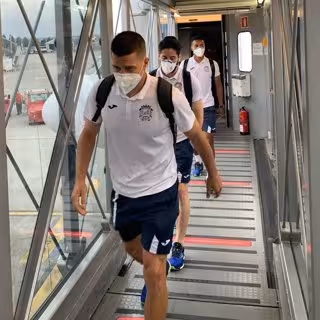Jugadores del CF Fuenlabrada en la expedición del equipo madrileño a A Coruña, para jugar contra el Deportivo en LaLiga SmartBank - CF FUENLABRADA