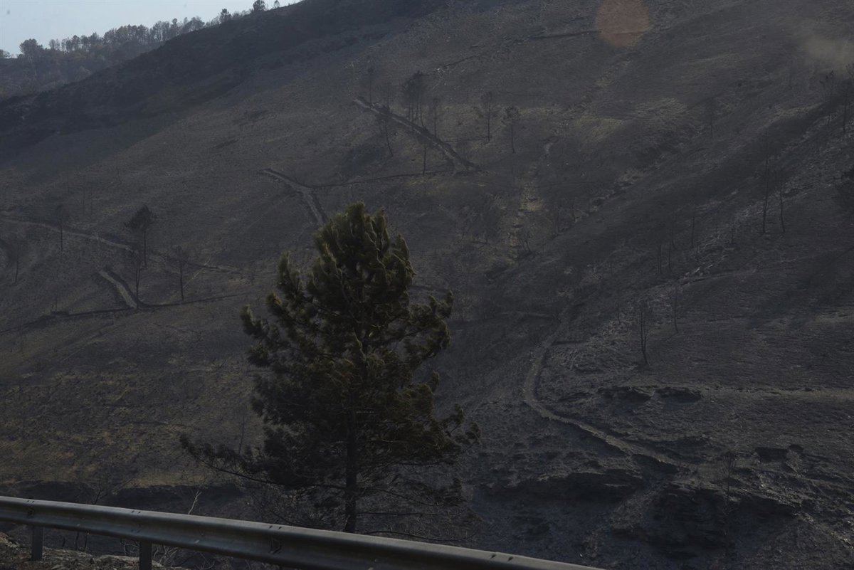Vista tras el incendio en San Vicente de Leira, a 19 de agosto de 2025, en Villamartín de Valdeorras, Ourense, Galicia (España). El incendio que permanece activo en el municipio ourensano de Larouco, que cruzó el Sil por varios puntos hasta pasar a la pro - Rosa Veiga - Europa Press