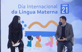 "La adquisicón de una lengua favorece y alimenta el aprendizaje de las siguientes y abre oportunidades de crecimiento personal, social y laboral", ha sentenciado Román Rodríguez durante su participación en los actos del Día de la Lengua Materna organizados por la Xunta en la Cidade da Cultura bajo la conducción de la periodista Esther Estévez, cara de la iniciativa de la TVG 'Dígocho eu'.