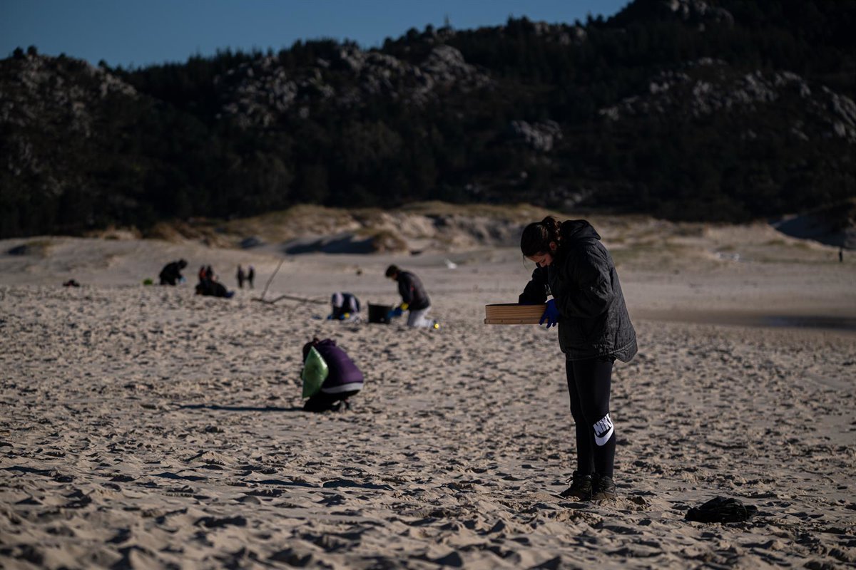 Voluntarios hacen una recogida de pellets de la arena, Galicia, a 7 de enero de 2024 - Elena Fernández - Europa Press